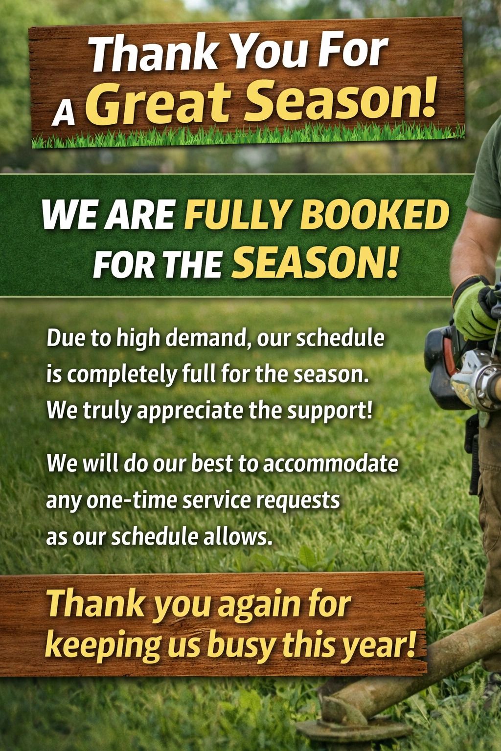 Quality lawn maintenance with 100% satisfaction guaranteed.